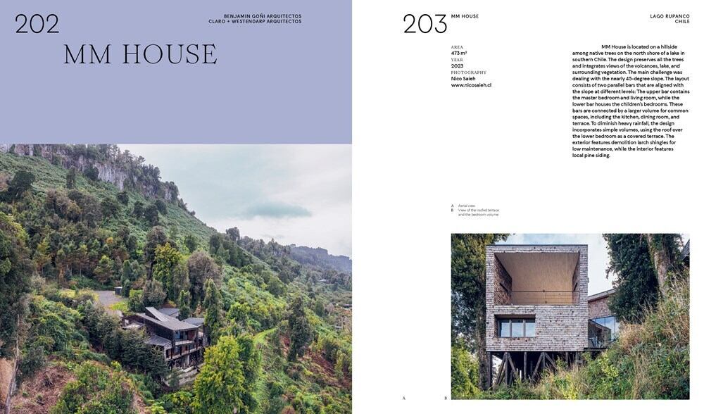 山岳建築は、眺望や地形の制約を活かした設計が求められます。本書では、地形に寄り添うように配置された建物、断熱性や採光に優れた構造、地元素材の活用など、建築と自然との対話を感じさせる事例が多数掲載されています。各プロジェクトは、建築とインテリアの両面から紹介されており、自然素材の活用、持続可能性への配慮、周囲の風景との調和などが共通のテーマとなっている。建築が単に空間をつくるだけでなく、環境との対話を促すメディアであることを示す構成となっており、山岳建築の可能性を多角的に提示している。