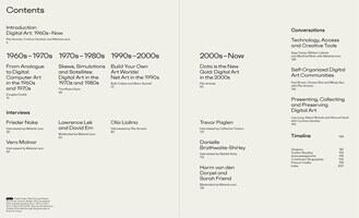 ロンドンのヴィクトリア・アンド・アルバート美術館(V&A)の豊富なコレクションを基盤とした、1960年代から現在までのデジタルアート史を包括的に紹介した画期的な書籍。編者ピタ・アレオラ(Pita Arreola)、コリンナ・ガードナー(Corinna Gardner)、メラニー・レンツ(Melanie Lenz)による監修のもと、グローバルなデジタルアートの発展を年代順に探究している。