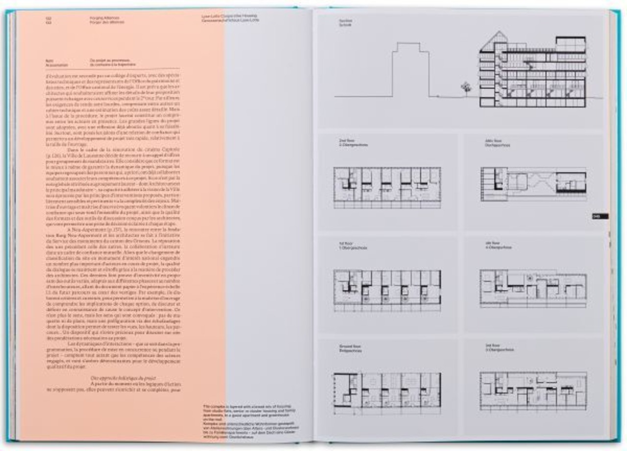 本書は、建築写真、図面、批評的テキストを通じて、現代スイス建築の潮流と課題を多角的に提示する。建築の社会的役割や空間の使われ方に焦点を当て、造形美だけでなく、建築が地域社会とどのように関わるかを探る構成となっている。また、多言語対応により、国際的な読者にも開かれた視点を提供している。