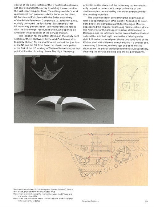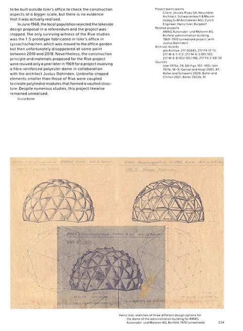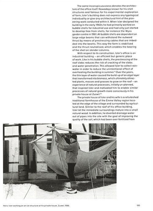 内容は、論考、代表的なプロジェクトの紹介、建設された作品のリスト、アーカイブ資料、写真を組み合わせ、工学的な面と文化史的な面の両方からIslerの活動にアプローチします。