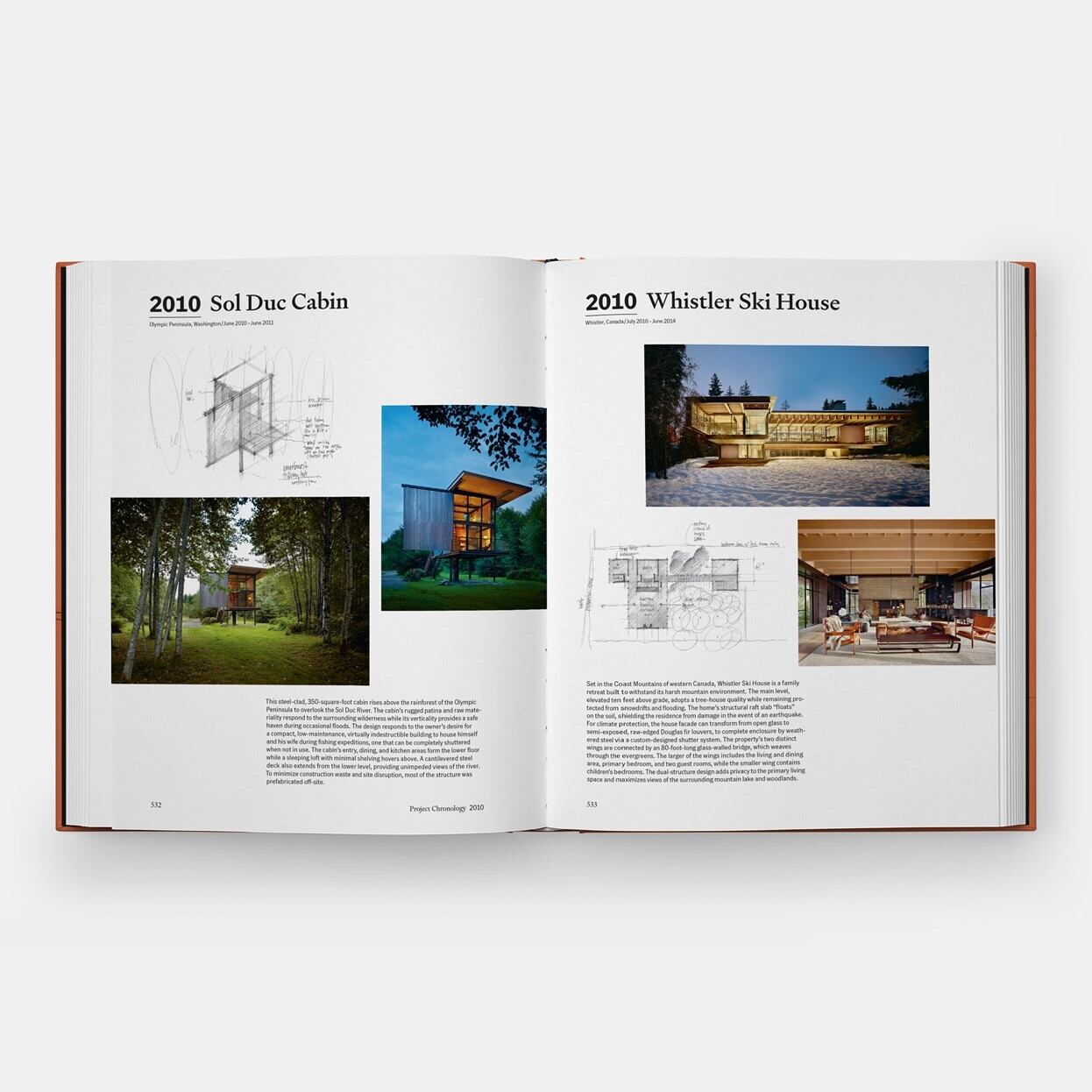 岩場に組み込まれた住宅や、可動式の壁や屋根を備えた建築など、周辺環境との関係性を重視した設計が特徴とされる。本書では、写真、手描きスケッチ、図面に加え、建築家本人へのインタビューを通して各プロジェクトの背景を示している。