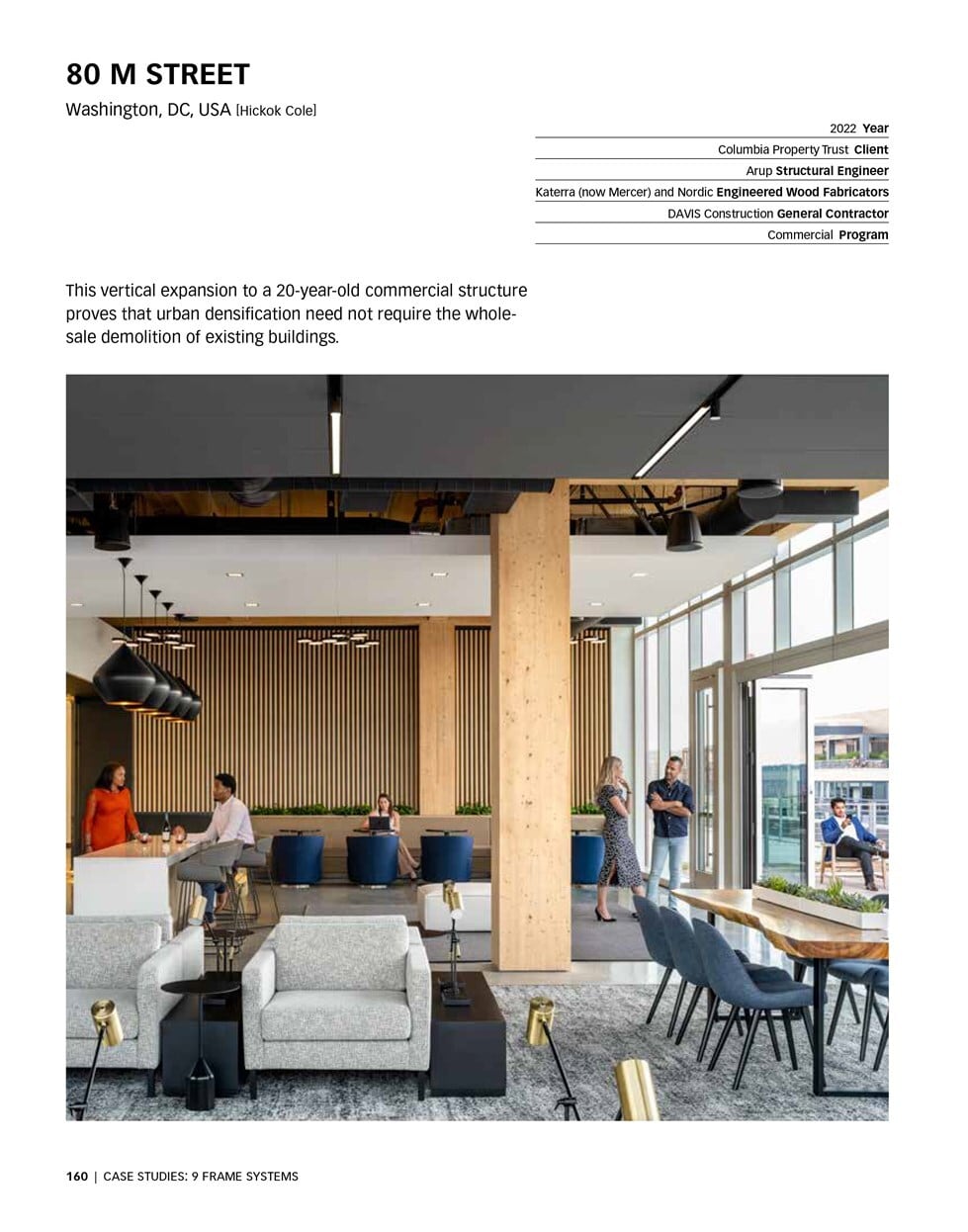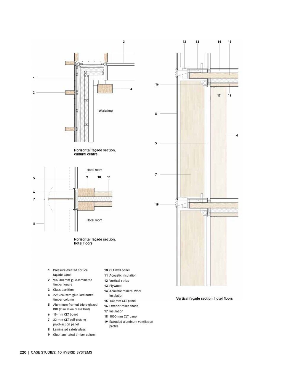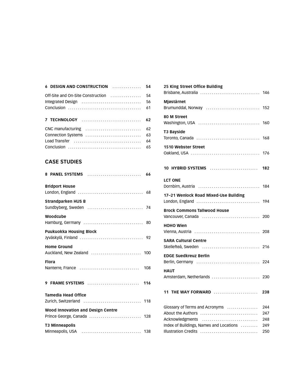 本書では、パネル構法、フレーム構法、ハイブリッド構法といった主要な構造形式を解説するとともに、国際的な17の事例を詳細な図面とともに紹介。さらに本版では、新たに将来展望の章と複数の最新プロジェクト(アムステルダムの「Haut」、ベルリンの「EDGE Südkreuz」、スウェーデンの「Sara Cultural Centre」など)を追加し、木造建築の技術的可能性と都市への適用範囲を示している。