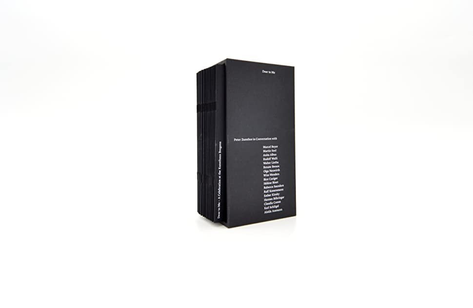 2017年夏、スイスの著名な建築家ピーター・ズントーは、クンストハウス・ブレゲンツで、彼の最も有名なデザインのひとつである「Dear to Me」展を20周年記念としてキュレーションしました。そのプログラムの一環として、ズントーが展覧会のために招待した哲学者、キュレーター、歴史家、作曲家、作家、写真家、コレクター、職人たちとの対話が行われました。彼らとの対話は、魅力的な人物の思想と実践を洞察するものです。芸術的な好みと実践、理由、職人としての経験から得た実用的な知識などを、相手と一緒に探っていくのです。いつもチャーミングで愛情深く、粘り強くフォローし、穏やかな決意をもって、ゲストを相互の知的散策に誘います。