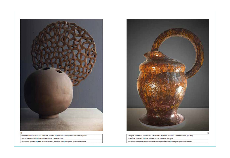 本書で紹介する1,000点の花器は、そのことを雄弁に物語っている。その8割以上が1988年から1993年生まれの女性、あるいはインディペンデントなデザイナーやアーティストによるもので、同じ原型を自由に解釈し、ひとつのアイテムが持つ無限の創造性を垣間見せています。セラミック、テラコッタ、磁器、金属、木、ガラス、天然繊維、産業廃棄物、リサイクルプラスチックなど多様な素材を用い、古来から超近代的な技術(3Dプリント)、アンフォラから壺、水差し、カラフェまで、これらの作品はさまざまなカテゴリーに分類され アート、デザイン、クラフトマンシップの統合と分離の境界線に位置しているのである。